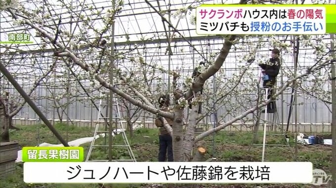 ミツバチもお手伝い サクランボハウスの中は春の陽気 「ジュノハート」や「佐藤錦」など栽培の果樹園で授粉作業 青森県南部町 青森テレビ 2026年3月14日(土) 06:00 国内 【写真を見る】サクランボの授粉作業 ※「NEWS DIG」のアプリやサイト以外でご覧の方は、関連リンクから画像をご確認いただけます。
