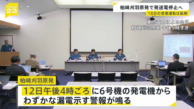 今年に入り、14年ぶりに再稼働した新潟県の柏崎刈羽原発。東京電力によりますと、12日午後4時ごろに6号機の発電機からわずかな漏電があったことを示す警報が鳴りました。その後も原因が特定できず、発電と送電を停…