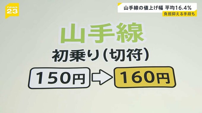 初乗りが160円に 山手線で値上げ幅が平均16.4%