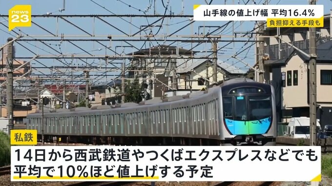 さらに、同じく14日から西武鉄道やつくばエクスプレスなどの私鉄でも、平均で10%ほど値上げする予定です。