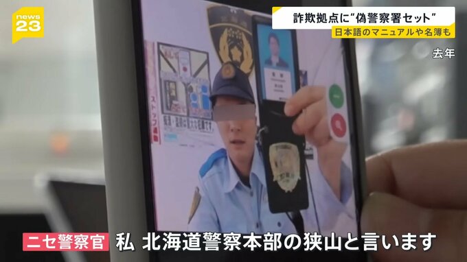 これは2025年かかってきた詐欺電話ですが、警官を装う制服に警察手帳、背景にはエンブレムやポスターなど、カンボジアのアジトからおこなわれていた手口と似た詐欺が日本でも横行しているのです。