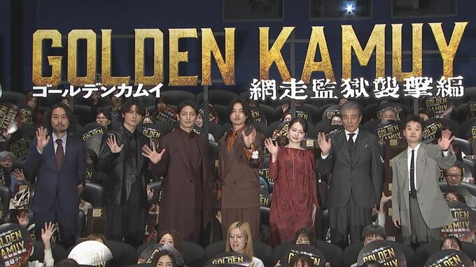 山﨑賢人さん、山田杏奈さん、眞栄田郷敦さん、矢本悠馬さん、玉木宏さん、舘ひろしさんが『ゴールデンカムイ 網走監獄襲撃編』の公開記念舞台挨拶に登壇しました。