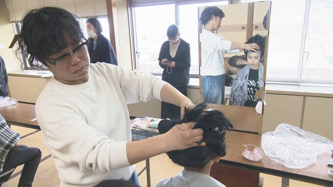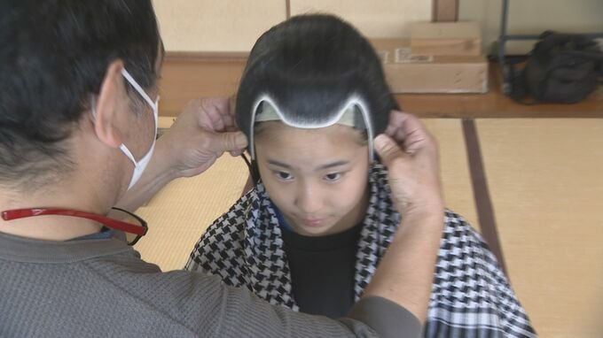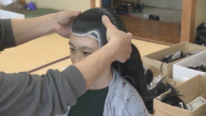 安宅関が舞台となっている「勧進帳」の上演に向け、出演する子供たちがかつら合わせに臨みました。