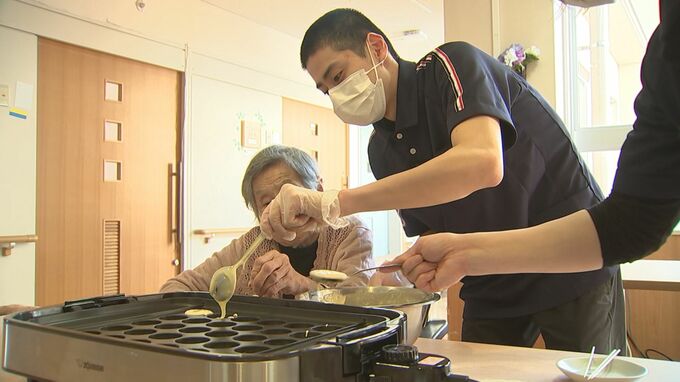 この日、施設では、入居者のおやつにとベビーカステラを作っていました。