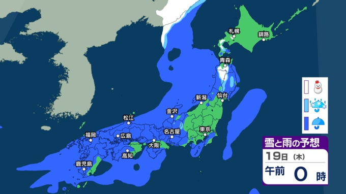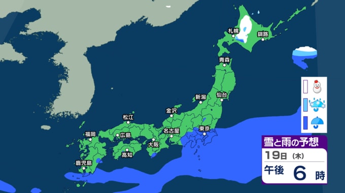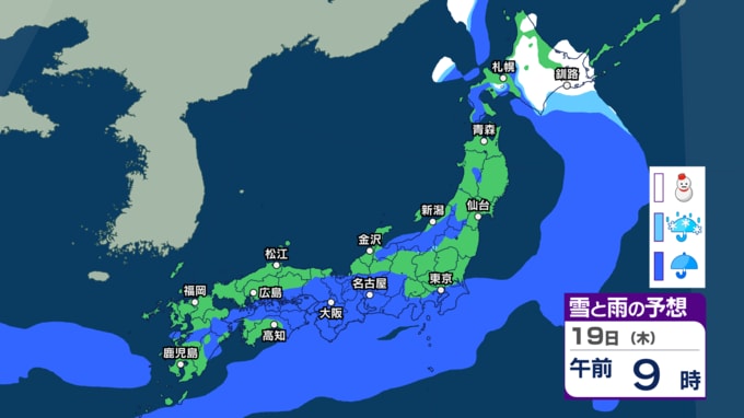 17日(火)頃にかけて晴れる所が多くなる見込み 一方、18~19日ごろは広い範囲で雨や雪に【今後の雨雪シミュレーション・14日午後9時更新】