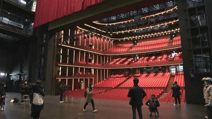 あさっての工事完了を前に公開されたのは「岡山芸術創造劇場ハレノワ」の約1700席をもつ大劇場やロビーなどです。ハレノワは地下2階・地上7階建てで、大中小と合わせて3つの劇場があります。
