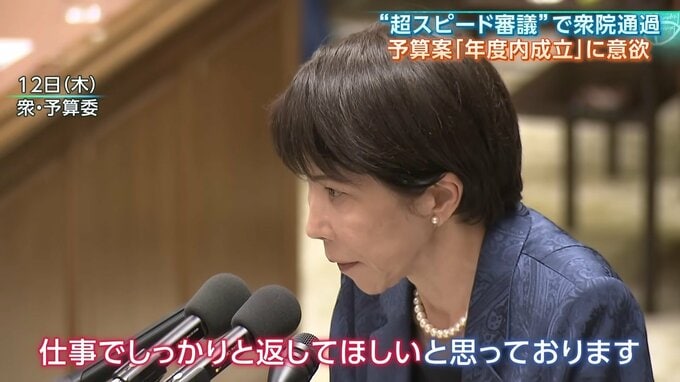 過去最大122兆円の来年度予算案が、13日衆議院を通過しました。高市総理が目指す年度内成立に向け、与党の圧倒的な数を背景に、審議時間は異例に短い59時間と“スピード通過”となりました。