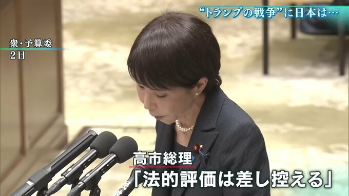 そうした中、注目されるのが、アジアの同盟国・日本の対応。高市総理は今回の攻撃について「法的評価は差し控える」と慎重な発言に終始してきました。