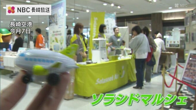 「ソラシドマルシェ」は、ソラシドエアと親交が深い長崎県内の自治体の魅力を知ってもらい、その地域に足を運ぶきっかけを作ろうと開催されていて、今回で4回目です。就航20周年記念となる今回は大村市、南島原市、波佐見町の特産品が販売されました。訪れた人は、南島原名物素麺をつかったつかみどりなどを楽しんでいました。