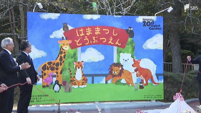 浜松市の動物園に来場者の記念撮影用の大型看板が寄贈され、15日、お披露目されました。お披露目されたのは、縦2.5メートル、横4メートルの大型看板です。この看板は、浜松ロータリークラブが創立90周年の記念事…