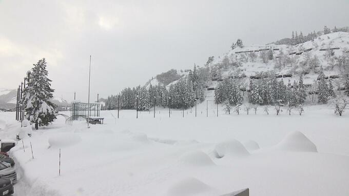 高橋広季アナウンサー「パラパラと雪が降っている只見高校です。グラウンドは積雪で見えません。雪の壁となっています」