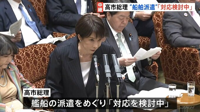 高市総理は、今週19日に予定されている日米首脳会談で、中東情勢について「事態の早期沈静化に向けた日本の考え方や立場を踏まえ議論する」と強調した上で、艦船の派遣をめぐっては、「対応を検討中」と述べるにとどめました。