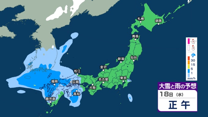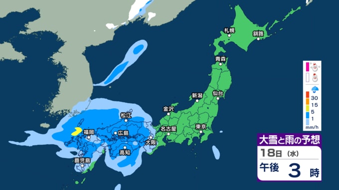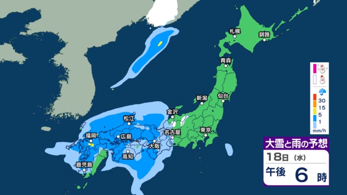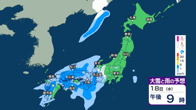 18日(水)~19日(木)頃は西日本~北日本で雨や雪に あす17日(火)にかけて“貴重な晴れ間”も雪の多い地域では「なだれ」に注意【今後の雨雪シミュレーション・16日正午更新】