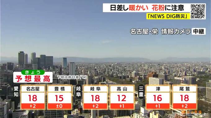 最高気温は名古屋や岐阜、尾鷲で18℃、高山では12℃の予想です。平年より3℃前後高く、日中は過ごしやすい暖かさになるでしょう。