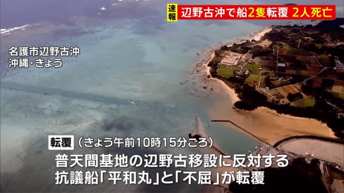 辺野古沖で2隻の船が転覆、2人が死亡