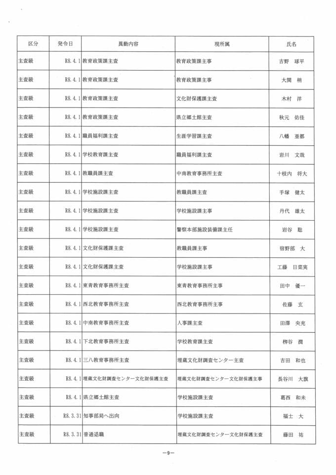 青森県教職員人事異動2026 県教育委員会事務局・教育機関(学校除く) 一覧【名簿全掲載】 青森テレビ 2026年3月18日(水) 17:00 国内 青森県 教職員人事異動一覧2026 【県教委事務局・教育機関(学校除く)】⑤ 【記事を最初から読む】