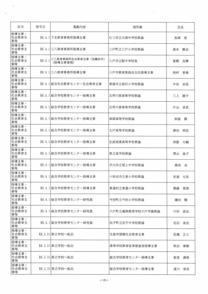 青森県教職員人事異動2026 県教育委員会事務局・教育機関(学校除く) 一覧【名簿全掲載】 青森テレビ 2026年3月18日(水) 17:00 国内 青森県 教職員人事異動一覧2026 【県教委事務局・教育機関(学校除く)】⑧ 【記事を最初から読む】