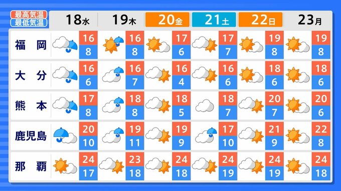 四国・九州北部(山口県を含む)・九州南部で19日頃から「この時期としては10年に1…