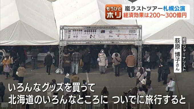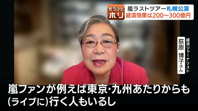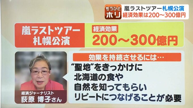 嵐ファンが例えば東京・九州あたりからも(ライブに)行く人もいるし、しかも割といいホテルに泊まり、その後、ドームで鑑賞し、いろんなグッズを買って、北海道のいろんなところに、ついでに旅行すると、約200億円~300億円の経済効果が、それだけでもあるのではないか。