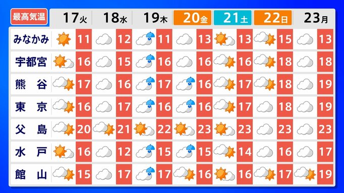 関東甲信地方の向こう2週間の気温は、暖かい空気が流れ込みやすいため高く、24日頃からはかなり高くなる可能性があります。