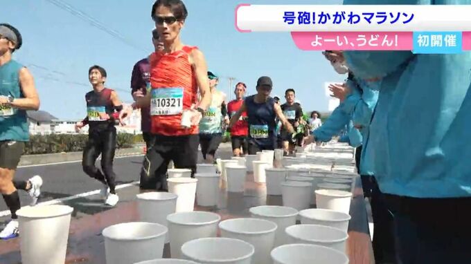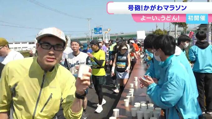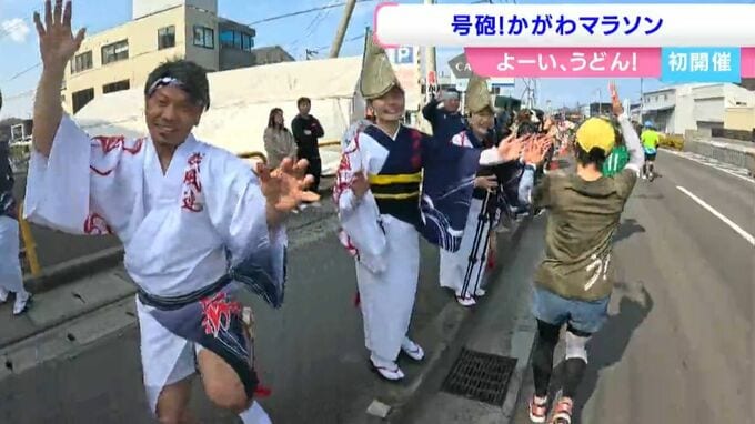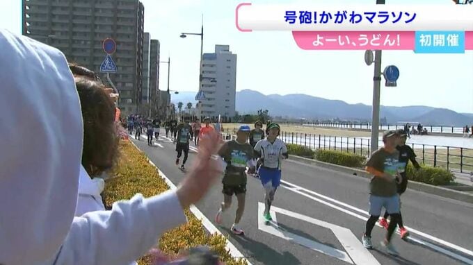 ランナーたちは綾川町で折り返し、沿道の声援を受けながら快晴の讃岐路を駆け抜けます。