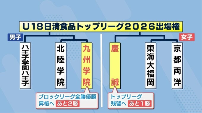 トップリーグの1つ下のカテゴリー・ブロックリーグで全勝優勝した男子・九州学院は初めてのトップリーグ参戦を目指し、女子・慶誠は2年間戦ったトップリーグの残留を目指しそれぞれ戦いました。