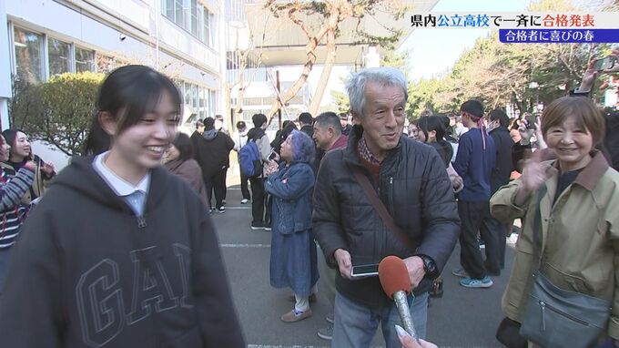このうち盛岡一高では、午後3時に合格者の受験番号が記された掲示板が掲げられ、受験生やその家族が番号を見つけると喜びの声を上げていました。
