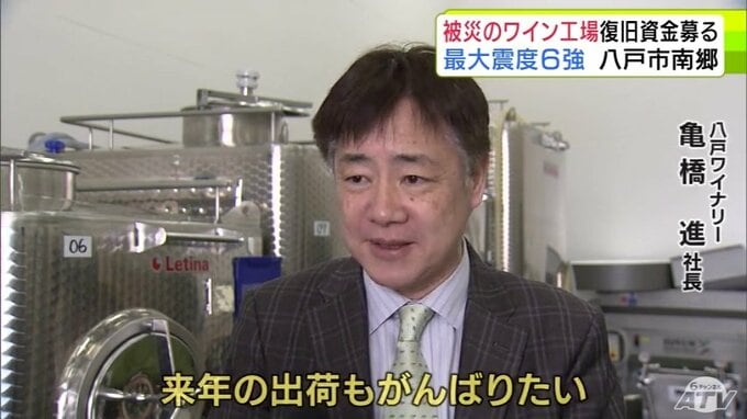 地震で出荷予定だった約2000本のワインは割れ醸造用の機械も故障… 被害総額1000万円 被災から3か月もいまだにワインが作れない工場 復興に向けた歩み 青森県八戸市南郷【青森県東方沖地震】 青森テレビ 2026年3月16日(月) 21:22 国内 【写真を見る】被災した工場や「被災ワイン」 ※「NEWS DIG」のアプリやサイト以外でご覧の方は、関連リンクから画像をご確認いただけます。