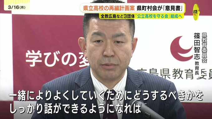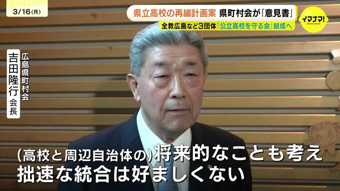 広島県教育委員会が先月発表した県立高校の再編計画案について、県町村会が十分な説明などを求める意見書を提出しました。