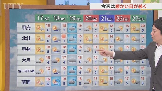 最高気温も甲府は18℃前後の日で平年よりも高い予想がでていまして、