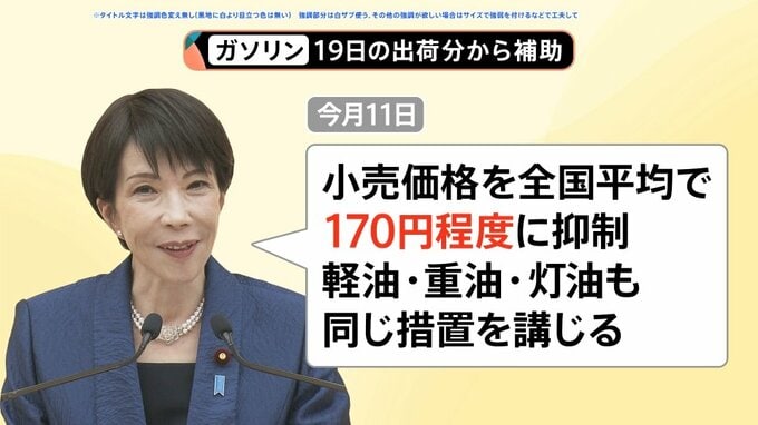 高市総理は3月11日、「小売価格を全国平均で170円程度に抑制する。軽油、重油、灯油も同じ措置を講じる」と発言。