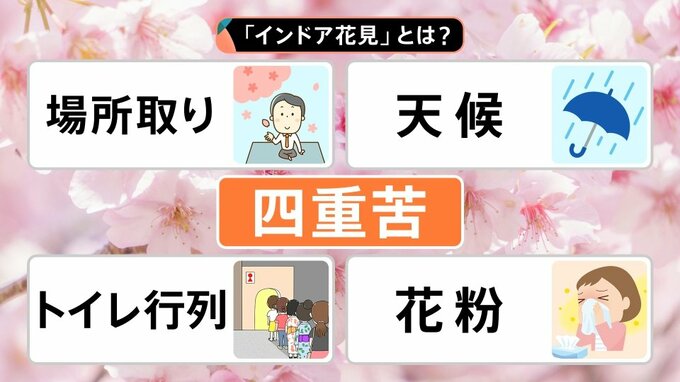 外だと寒かったり、花粉があったりということで、「室内で花見ができないか」と、ここ数年は「インドア花見」も定着しつつあるようです。