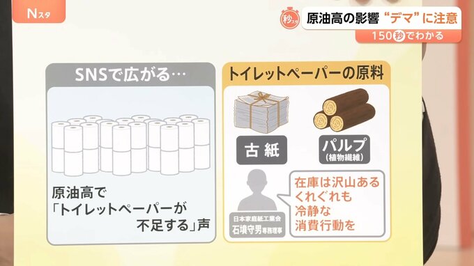 原油高で「トイレットペーパーが不足する」という声が、SNSなど一部で広がっています。