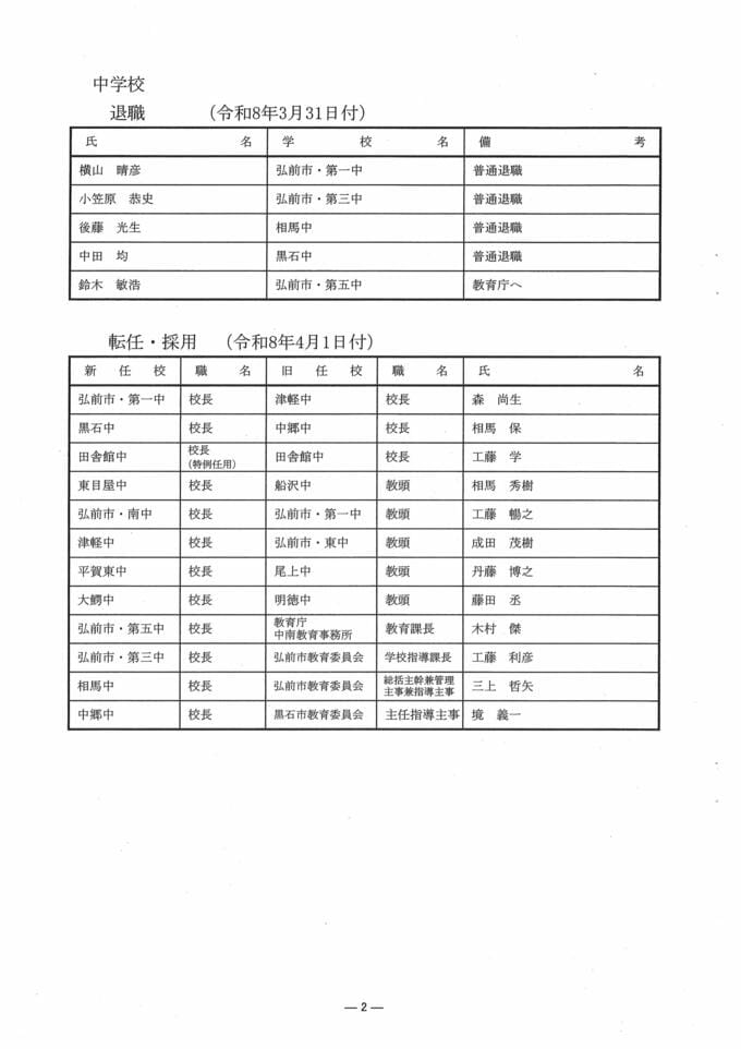 青森県教職員人事異動2026 「あの先生どこに行ったんだべ?」 小学校・中学校(中南管内) 一覧【名簿全掲載】 青森テレビ 2026年3月18日(水) 17:00 国内 青森県 教職員人事異動一覧2026 【小学校・中学校(中南管内)】校長の部 【記事を最初から読む】