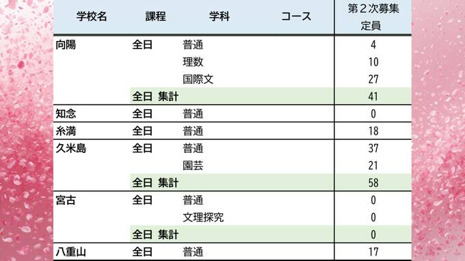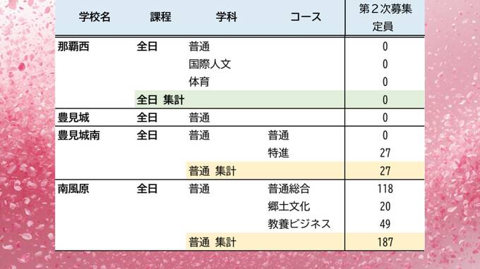 【沖縄県立高校入試2026】17日に合格発表、18日からは2次募集 今年は38校・88学科で【一覧あり】 琉球放送 2026年3月17日(火) 05:00 国内 暮らし・マネー 2次募集状況(那覇西~八重山農林)