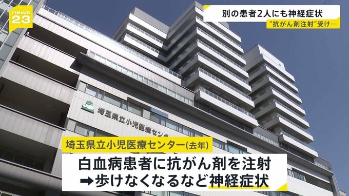 埼玉県の小児医療センターで、抗がん剤注射を受けた患者が神経症状を発症し、1人が死亡、2人が重体となった問題で、別の患者2人にも神経症状が出ていたことがわかりました。埼玉県立小児医療センターで去年、白血…