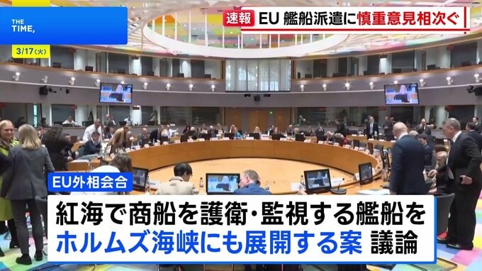 EU=ヨーロッパ連合の外相会合が行われ、商船の護衛や監視のためにホルムズ海峡への艦船の派遣が検討されましたが、慎重な意見が相次ぎ見送られたと発表しました。EU外相会合は16日、ベルギーのブリュッセルで行わ…