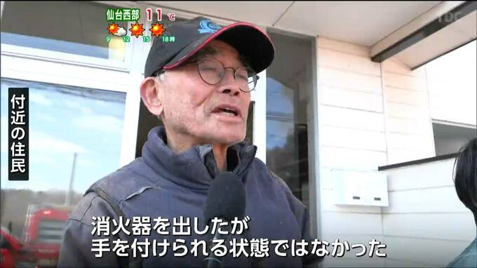 付近の住民「私が来た時には火が出ていた。消火器を出したが手を付けられる状態ではなかった」