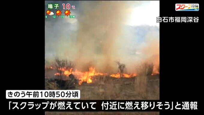 16日午前10時50分頃、白石市福岡深谷で「スクラップが燃えていて付近に燃え移りそう」と、近くにいた人から消防に通報がありました。