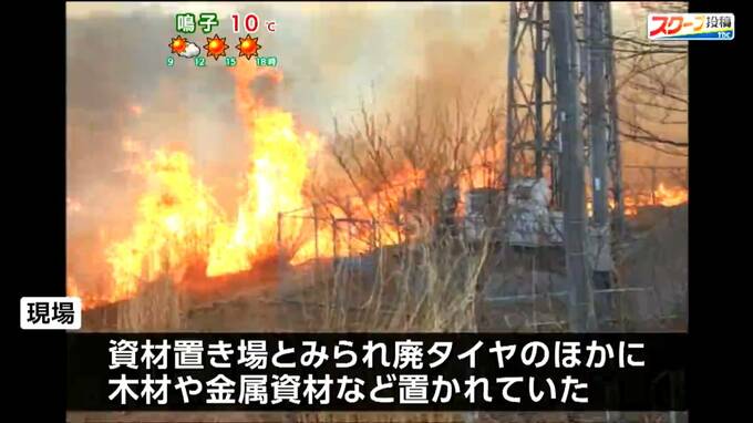 現場は資材置き場とみられ、廃タイヤのほかに木材や金属資材などが置かれていたということです。