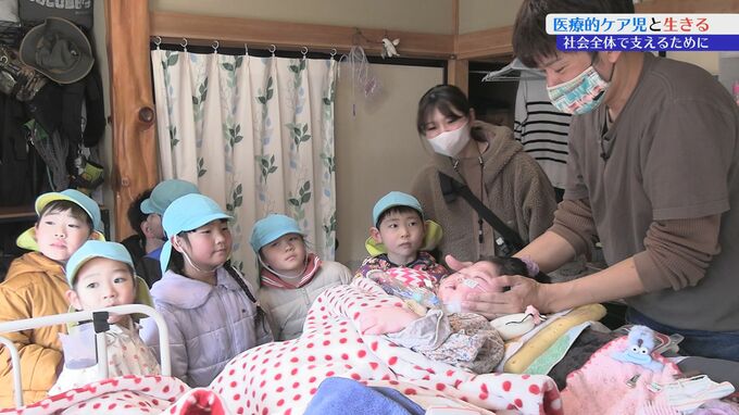 この日、地域の保育園の園児8人が小向さんの家を訪れ、葵水ちゃんに歌のプレゼントを贈りました。