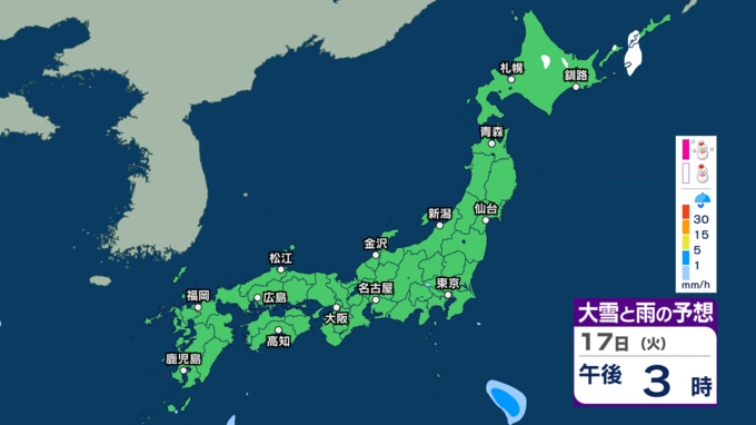 あす18日(水)は西から天気が下り坂 19日(木)にかけて雷を伴い“バケツをひっくり返したような”激しい雨の所も【今後の雨雪シミュレーション・17日正午更新】 新潟放送 2026年3月17日(火) 12:00 17日(火)の雨と雪のシミュレーション