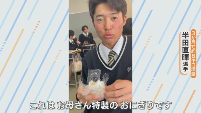 空腹の時間をなるべく作らないよう、家から持ち込んだおにぎりなどを授業の合間に食べるほか、練習の合間も“補食”の時間があるそう。
