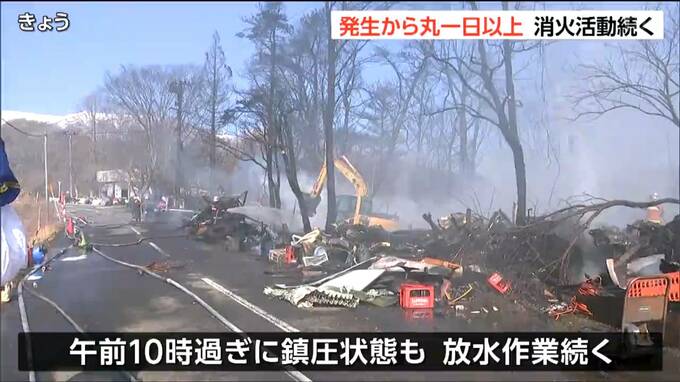 16日に宮城県白石市内の資材置き場から火が出た火事は、発生から丸一日が過ぎた17日も消火活動が続けられています。現場付近を撮影した男性によりますと、風で火の粉が飛び散り下草にも燃え移ったということです。…