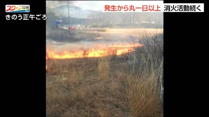また、これまでに付近の住宅などにも延焼し、少なくとも建物2棟が全焼しています。けがをした人の情報は入っていません。