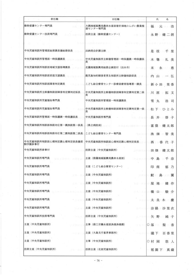 鹿児島県 人事異動一覧2026 部長・部次長・課長級・課長補佐級・係長級・一般職員【鹿児島県庁異動名簿】令和8年 南日本放送 2026年3月17日(火) 18:48 国内 ▼▼(リンク)部長級・部次長級~ ▼(リンク)部次長級続き~課長級 ▼(リンク)課長級~▼(リンク)課長補佐級・係長級・一般職員