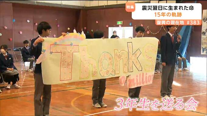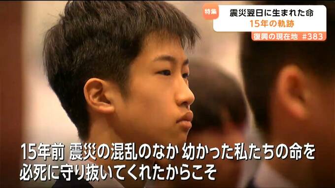 「15年前、震災の混乱のなか幼かった私たちの命を必死に守り抜いてくれたからこそ、きょうという日があります」