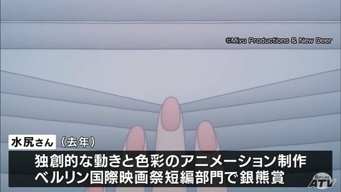 ベルリン国際映画祭の短編部門で銀熊賞受賞の映像作家・水尻自子さんなど3人が受賞 青森県の芸術や文化の普及に貢献した人に贈られる「東奥文化選奨」に 青森テレビ 2026年3月17日(火) 17:15 国内 【写真を見る】贈呈式の様子は… ※「NEWS DIG」のアプリやサイト以外でご覧の方は、関連リンクから画像をご確認いただけます。