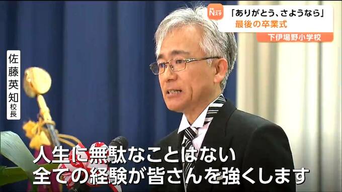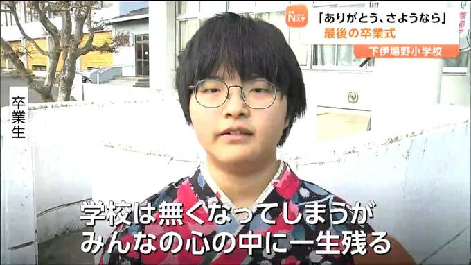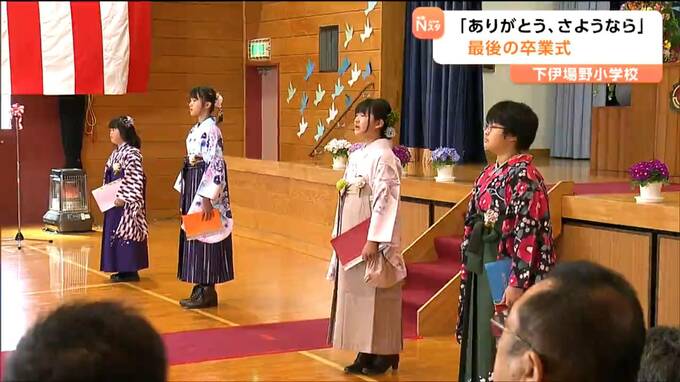 2025年度で35年の歴史に幕をおろす宮城県大崎市の下伊場野(しもいばの)小学校で最後の卒業式が行われ、児童4人が学び舎を巣立ちました。