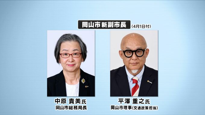 副市長体制の変更は、公共交通網の整備や新アリーナの計画に対応するためで任期満了となる林恭生副市長の後任として、中原貴美総務局長と平澤重之理事を充てるとしています。副市長の人事は4月1日付で、任期は4年となっています。